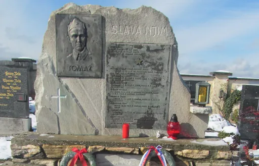Eleven fallen partisan fighters and activists of the Liberation Front lie in the cemetery in Sveče / Suetschach. In addition to the national hero Matija Verdnik-Tomaž, who was seriously wounded in the fight with the Nazis on 28 January 1944 and succumbed to poisoning on 2 February, there are also the remains of Aleksander Čero, who was killed on 1 May 1944 at Rute nad Bistrico v Rožu / Bärental, his brother Ivan Čero, who fell on 9 May 1944 at Rute nad Bistrico v Rož / Bärental, and his brother Ivan Čero, who was killed on 9 May 1944 at Rute above Bistrica v Rož / Bärental, who died on 9 May 1944. In addition to these three partisans, Ivan Mežik from Jesenice and Franc Lipovec from Javorniški Rovt, as well as three unidentified partisans who died in the fight with the Nazi police in the vicinity of Bistrica / Feistritz and Sveče / Suetschach, are also buried in the cemetery. The bodies of three Liberation Front activists, Aleš Einspieler, Florijan Križnar and Valentin Schwarz, are buried here together with those of the fallen fighters. They were the victims of a vicious killing. A magnificent rock monument (270 cm wide, 220 cm high) has been erected on the 12-metre-long and 1.5 metre-wide burial site. The following verse is inscribed on the newly affixed cast-iron plaque alongside the names of those buried:
